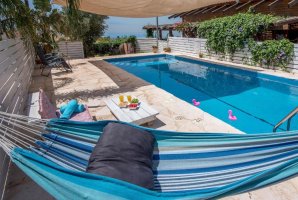 במתחם החיצוני תמצאו בריכת שחייה פרטית ומגודרת, ג'קוזי ספא מפנק, פינות ישיבה נוחות, ערסלים ומיטות שיזוף. בנוסף, ישנה עמדת מנגל BBQ לשימושכם.