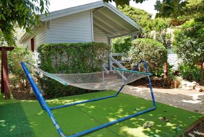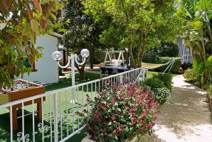 הבקתות הרומנטיות מוקפות חצר מטופחת עם ערסלים, פינות ישיבה, צמחיה מטופחת, כסאות נדנדה, עמדת מנגל, שולחן סנוקר, שולחן פינג פונג, ג'קוזי. יש מטבח חיצוני עם אופציה לבשל על כיריים מגז וחדר אוכל גדול מאובזר.