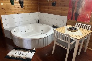 כראוי לצימרים רומנטיים תיהנו בכל צימר מג'קוזי עגול מוקף נרות. הלינה היא במיטה זוגית נוחה שמבטיחה שנת לילה טובה. לנוחותכם לא שכחנו להוסיף גם מזגן, פינת אוכל קטנה, פינת ישיבה ומרפסת פרטית. פרט למטבח החיצוני תמצאו בכל צימר מטבחון.
