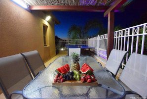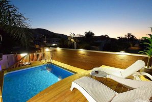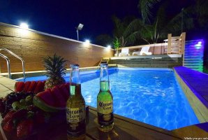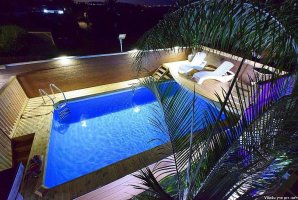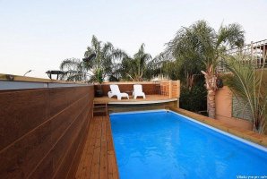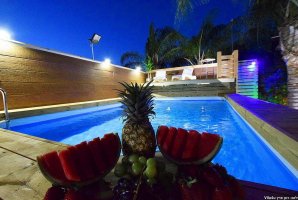 את שלוש הסוויטות מקיפה חצר נופש עם בריכה מפנקת שסביבה דק יוקרתי, ג'קוזי ספא, עמדת ברביקיו ומטבח חיצוני, מיטות שיזוף, פינות ישיבה נעימות, תאורה רומנטית ופרגולה להצללה.