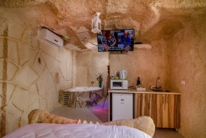 כל 4 המערות מרווחות ומפנקות. יש בכל מערה ג'קוזי זרמים מפנק, מיטה זוגית נוחה עם מזרן אורתופדי, פינת ישיבה, פינת אוכל, מטבחון מאובזר, מרפסת פרטית וחדר רחצה מאובזר. יש מסך טלוויזיה 50 אינטש בכל צימר יחד עם חבילת ערוצים.