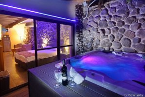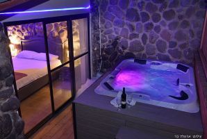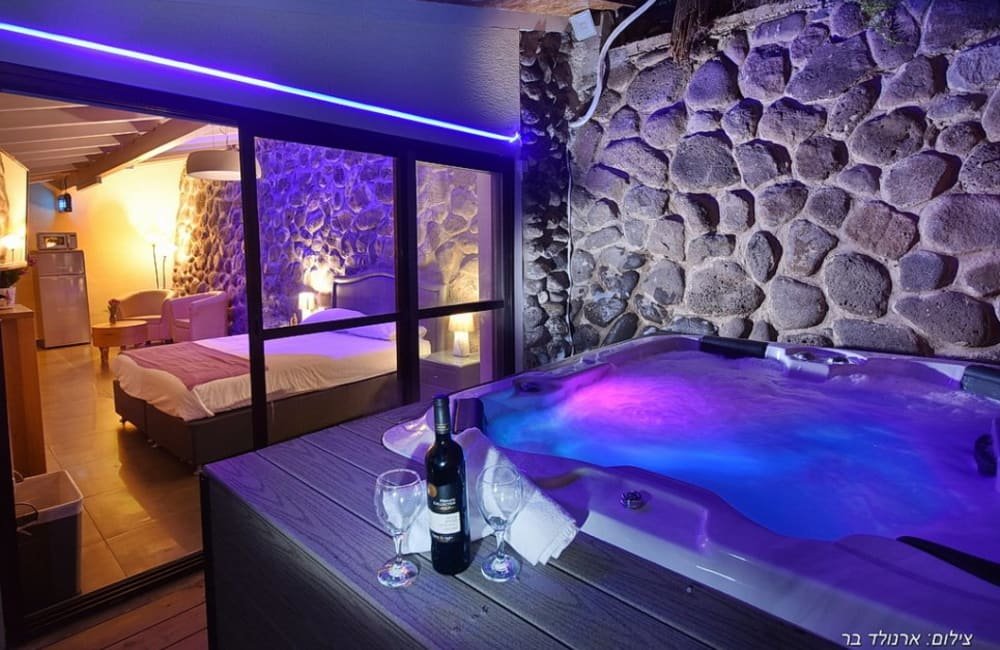 עם יוקרה ורומנטיקה בכל פינה, הנופים היפים ביותר בצפון ואבזור יוקרה – האורחים של בקתת מקום טוב באמצע נהנים מכל רגע. קיר אבן במראה טבעי מוסיף לבקתה קסם מיוחד ויוצר אווירה של טבע.