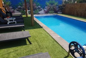 את הצימרים מקיפה חצר נופש מטופחת ופסטורלית עם בריכה מגודרת ומחוממת בהתאם לעונה. לצד הבריכה פינות ישיבה ושיזוף, שולחן גינה, ערסל, עמדת מנגל עם מטבח חיצוני נוח, פינג פונג. אורחי הצימרים נהנים לבלות בחצר של המתחם.