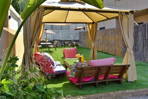 כעת כאשר הגעתם אל מקום כה קסום ופסטורלי תרצו בוודאי לבלות את רוב זמנכם בחוץ, החצר של מתחם אחוזת מאיה יבנאל מטופחת ומאובזרת לנוחותכם. יש בחצר פינות ישיבה, טרמפולינה גדולה לילדים, ערסל, נדנדות, עמדת מנגל ובריכה פרטית מהנה.