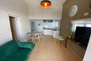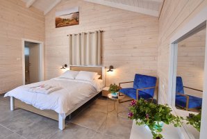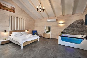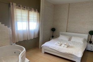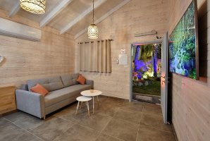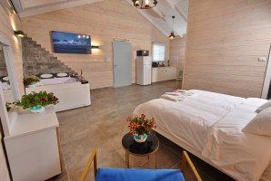 לא תוכלו לפספס את אמבט הספא היוקרתי שממתין לכם בכל צימר. הלינה היא במיטה זוגית נוחה. צרו קשר עם בעלי המתחם לפרטים נוספים אודות פתרונות לינה לילדים. בסלון פינת ישיבה נפתחת למיטה ומסך שטוח עם מבחר ערוצים של הוט ונטפליקס. המטבח מתאים להכנת ארוחות קלות בתוספת מכונת אספרסו ופינת אוכל משפחתית.