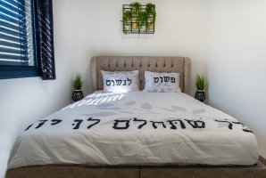 מיטה זוגית נוחה ומפנקת ממתינה לכם עם מצעים איכותיים וכלי מיטה נוחים. מערכת מיזוג אוויר מבטיחה טמפרטורה נעימה על פי בחירתכם. האווירה הפסטורלית השקטה במתחם תאפשר שנת לילה טובה ורגועה.
