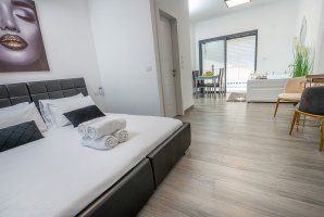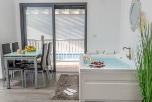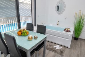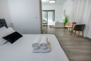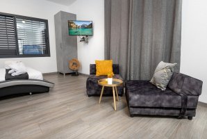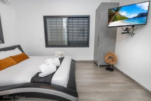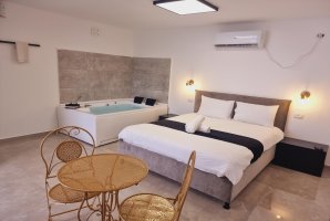 אורחי הצימרים ישנים טוב בלילה במיטה זוגית נוחה עם מצעים איכותיים. בכל צימר תיהנו ממזגן לשליטה בטמפרטורה בכל חודשי השנה. אמבט ספא מרובע משדרג ברגע כל אירוח ומבטיח אווירה רגועה. בצימר גם מסך שטוח לצפייה בסרטים, ערוצים של הוט, ארון, פינת ישיבה, פינת אוכל, מטבחון. בחצר תיהנו מבריכה פרטית מחוממת ומקורה בהתאם לעונה (הבריכה מגודרת).