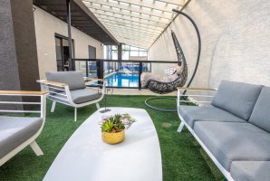 פרט לבריכה תמצאו בחצר הנופש גם פינת ישיבה ושיזוף, ערסל נוח, שולחן גינה, עמדת מנגל, שולחן סנוקר. החצר אידאלית בעבור חופשות קיץ. מחפשים צימר לחגוג בו יום הולדת? מתחם ניו גולד מגשים לכם את החלום על מסיבת בריכה.