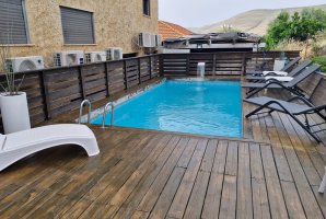 המתחם מצויד בבריכת שחייה פרטית מחוממת ומגודרת, כך שתוכלו ליהנות משחייה בכל עונה בשנה. בנוסף, תמצאו כאן בריכת זרמים מרגיעה. במתחם החיצוני ישנם מתקני חצר לילדים, שולחן סנוקר, שולחן פינג פונג ועמדת מנגל BBQ לחוויית בילוי מושלמת.