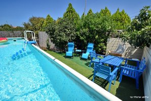 את הצימר הקסום הזה מקיפה חצר מטופחת עם בריכה פרטית, פינות ישיבה נוחות, ערסל, שולחן פינג פונג, עמדת מנגל, אווירה פסטורלית והרבה אוויר צח. החצר מתאימה לבילוי עם הילדים וגם למשפחות או קבוצות חברים.