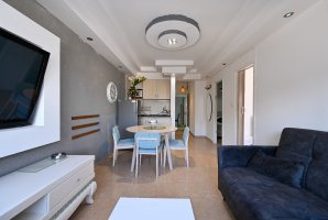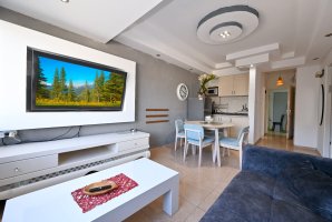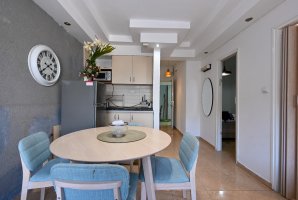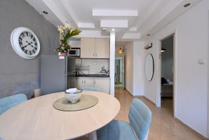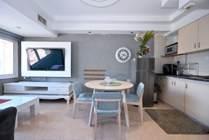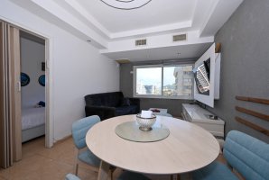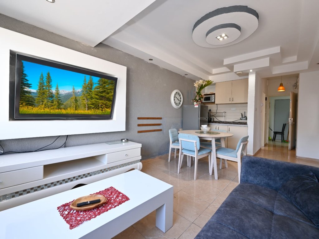 הדירה מאובזרת בכל טוב - מסך LCD, ספת סלון נפתחת למיטה, וטלוויזיה בלוויין עם YES ו-Netflix. פינת הישיבה המפנקת כוללת שולחן אוכל וארונות אחסון, כך שתוכלו להרגיש בבית גם בחופשה.