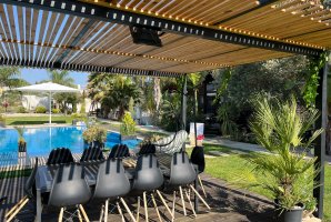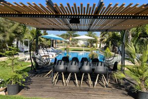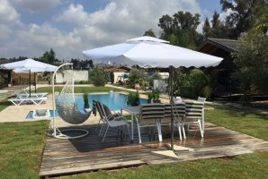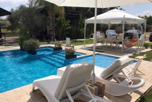 חצר נופש מטופחת ומושקעת עומדת לרשות אורחי הצימרים עם בריכת שחייה בנויה (מתאימה למבוגרים וילדים), ג'קוזי זרמים מרגיע, פינות ישיבה, מיטות שיזוף, מדשאות, בר מסעדה ואווירה נעימה של חופש ומרחב.