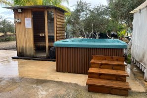 בריכת שחייה מחוממת, סאונה יבשה עם אבנים חמות וג'קוזי מחומם!