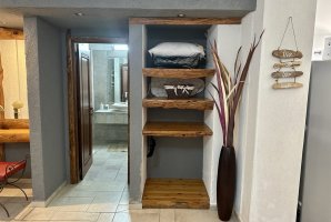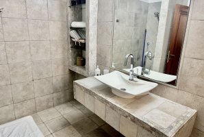 כדאי להוסיף למקלחת וילון כי המים יוצאים, יש מגב, אבל כדאי להוסיף וילון.