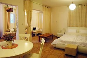 דירת הנופש במתחם תוכל לשמש לאירוח זוגי או משפחתי עם מיטה זוגית, מסך טלוויזיה, סלון אותו אפשר להפוך לפינת לינה לילדים, חדר רחצה עם ג'קוזי, פינת אוכל, מטבח מאובזר, חצר פרטית עם מדשאה גדולה.
