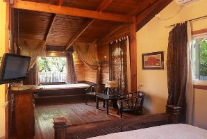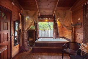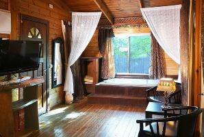 הבקתה הרומנטית ביותר מיועדת לאירוח זוגי עם ג'קוזי, פינת ישיבה, מסך טלוויזיה, פינת אוכל קטנה, מטבחון מאובזר, חדר רחצה וחצר פרטית עם פינת ישיבה וערסל.