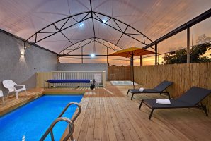 האטרקציה העיקרית היא חצר נופש מטופחת עם בריכה מחוממת בעונה, ג'קוזי ספא, פינות ישיבה נוחות, ערסל, מיטות שיזוף ועמדת מנגל. החצר צמודה אל הצימר. מיד בכניסה אל הצימר תבחינו בעיצוב פנים יוקרתי ומושקע. הצימר כולו מעוצב ומאובזר בקפידה עם מיטה זוגית גדולה, פינת ישיבה, מסך שטוח, ארון, מטבח שאפשר לבשל בו, תמי 4, חדר רחצה.