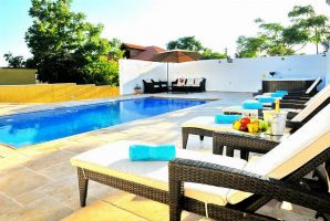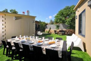 חצר נופש מטופחת מקיפה את המתחם עם בריכה פרטית, מיטות שיזוף, פינות ישיבה, שולחן סנוקר, שולחן פינג פונג, ג'קוזי מרובע, עמדת מנגל, מדשאות ונוף קסום.