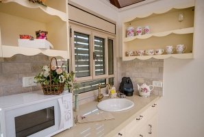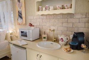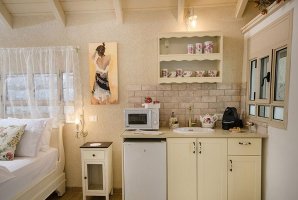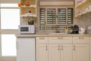 איזה אבזור קיים במטבח של פרובנס בגן?האבזור הקיים במטבח של פרובנס בגן: קומקום חשמלי, מכונת אספרסו / קפה, מקרר קטן, מיקרוגל.