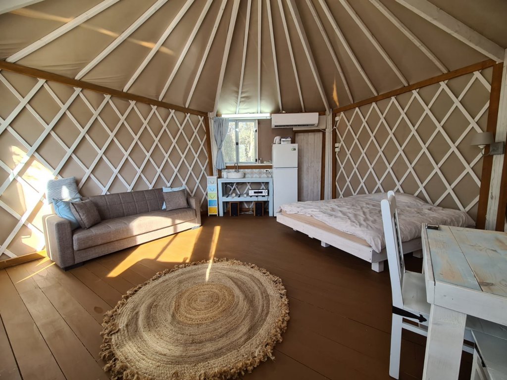 יורט קסום ומטופח עם מזגן וקמין עצים. הטרנד החדש שמשלב בין אווירה של טבע לבין רמה גבוהה של אירוח.