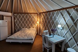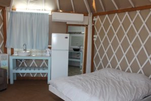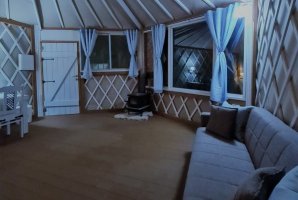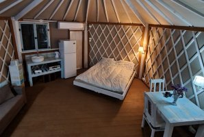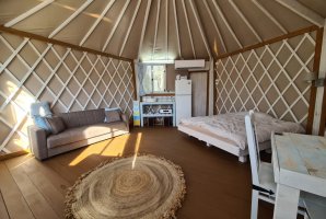 בעבור אלו שמעט חוששים מפני אירוח ביורט נסביר שמדובר במתחם סגור ופרטי. יש במתחם רק יורט אחד כך שאתם נהנים מפרטיות מלאה. האירוח כולל ספת סלון שנפתחת למיטה, רצפת עץ, ארונות, פינת ישיבה, מיטה זוגית נוחה. יש כאן את כל מה שיש וצריך לאירוח משפחתי או זוגי. לרשותכם גם מטבחון מאובזר ונוח עם מקרר ומיקרוגל. יש ביורט חדר רחצה.