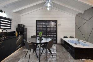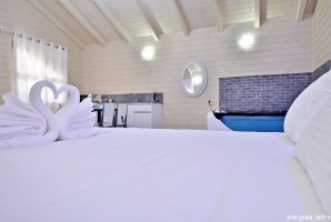 2 בקתות רומנטיות וכפריות ממתינות לכם עם עיצוב יוקרתי. הבקתות מוקפות בגינה מטופחת עם פינות ישיבה, מיטות שיזוף, עמדת מנגל. יש בחצר המתחם בריכה מגודרת ומחוממת בעונה וגן ג'קוזי ספא. הבריכה מחוממת ומקורה בהתאם לעונה.