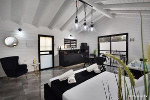 2 בקתות עץ רומנטיות ומטופחות עם אמבט ספא, נוחות של בית, עיצוב פנים יוקרתי ואווירה קסומה. בחצר תיהנו מבריכה מחוממת ומקורה בעונה.