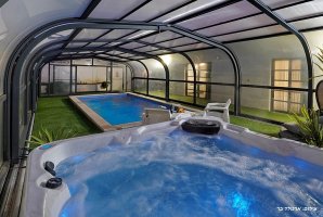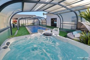 המתחם החיצוני מציע שפע של מתקנים להנאה מושלמת: בריכת שחייה פרטית מגודרת, מקורה ומחוממת, ג'קוזי ספא, ופינות ישיבה נוחות מול הנוף הפתוח. בנוסף, תוכלו להיעזר בעמדת מנגל BBQ (לא בשבת) וליהנות מארוחה משפחתית או זוגית תחת כיפת השמיים.