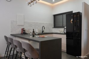 איזה אבזור קיים במטבח של שלווה עילאית?האבזור הקיים במטבח של שלווה עילאית: קומקום חשמלי, מקרר, מיקרוגל.