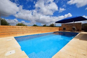 גודל הבריכה הבנויה בוילה שירה 3X9 1.4 עומק מחוממת ופרטית.