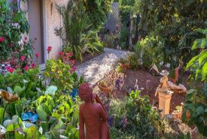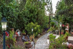 את המתחם מקיפה גינה מטופחת עם יצירות אומנות, גלריה פרטית של בעלות המתחם, מדשאה, ערסלים, פינות ישיבה. החצר משקיפה על נופי החרמון והרי הגולן.