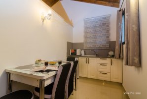 פינת הסלון בכל צימר כוללת כורסאות נפתחות למיטות, מסך טלוויזיה וחבילת ערוצים. לצד הסלון תמצאו מטבחון מאובזר להכנת ארוחות קלות או חימום אוכל מוכן. יש במטבח פינת אוכל משפחתית קטנה. אם לא מתחשק לכם לבשל תוכלו להזמין בתיאום מראש תוספת של ארוחת בוקר.