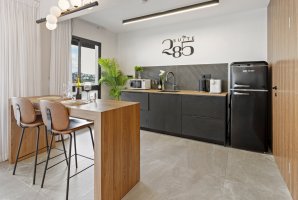 איזה אבזור קיים במטבח של סוויטה 285?האבזור הקיים במטבח של סוויטה 285: קומקום חשמלי, מכונת אספרסו / קפה, מקרר, מיקרוגל.