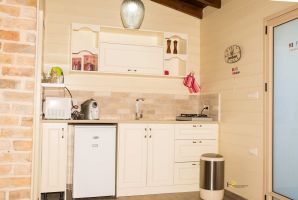 מטבח מאובזר עם כיריים, מקרר, מיקרוגל, טוסטר, פינת קפה וכלים שימושיים יעמוד לרשותכם בכל בקתה.