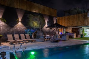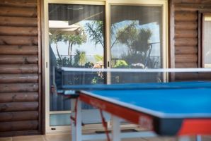 חדר גדולה משותפת לשתי הבקתות עם בריכה פרטית גדולה, מדשאות, ריהוט גן נוח, נדנדות, תאורת גן, חנייה פרטית, שולחן כדורגל, פינג פונג, עמדת מנגל.