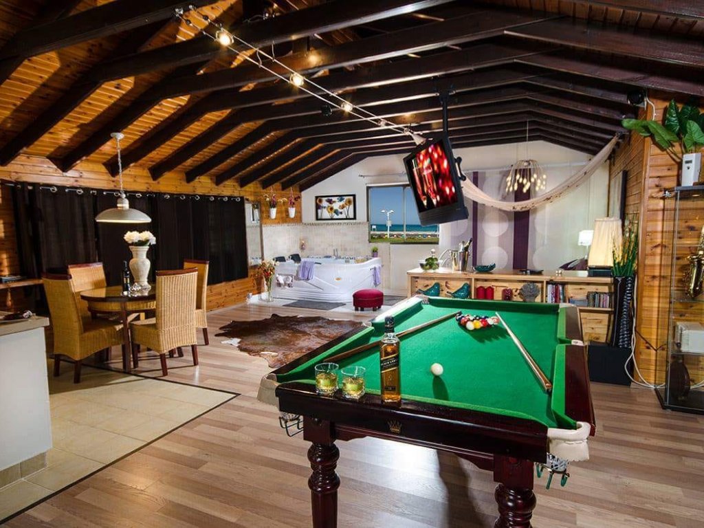 אורחי המתחם נהנים מג'קוזי מפנק, מיטות זוגית רומנטיות, מיזוג אוויר מרכזי, פינת סלון משפחתית, פינת אוכל, רצפת פרקט יוקרתית, שולחן סנוקר, חדר רחצה גדול, מסך טלוויזיה עם מבחר ערוצים, מערכת קולנוע ביתית, אינטרנט אלחוטי.