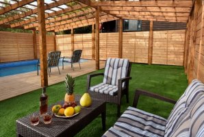 הבקתות כולן עשירות בפינוקים, מטופחות ומושקעות. החצר שמקיפה את הבקתות כוללת פינות ישיבה, ג'קוזי מפנק שממוקם בתוך גזיבו ונוף קסום. ניתן לשדרג את האירוח עם הזמנת עיסויים וארוחת בוקר (כרוך בתשלום נפרד). יש במתחם גם בריכה מגודרת ומחוממת ומקורה בהתאם לעונה.