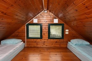 בקתות שאפו תוכל לארח עד 10 נופשים. יש בבקתה ג'קוזי מרווח ומפנק, חדר שינה זוגי, קומת גלריה ללינת ילדים או אורחים נוספים, סלון עם פינת ישיבה, קמין לימי החורף הקרים, סאונה יבשה פרטית לאורחי הבקתה בלבד, מרפסת פרטית עם פינת ישיבה.