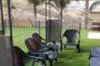 חדר אוכל חיצוני מרכזי ממוזג ומאוורר, מטבח חיצוני מאובזר, פינות ישיבה בשפע, ערסל, ריהוט גן חיצוני, מיטות שיזוף ועמדת מנגל BBQ מסודרת.