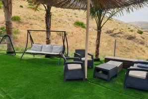 את הצימרים מקיפה גינה מטופחת עם פינות ישיבה, שמשיות להצללה, ערסלים, מיטות שיזוף, נדנדות, תאורת גן צבעונית, עמדת מנגל, ג'קוזי זרמים מפנק, מדשאה ובריכה מרעננת (בעונת הרחצה).