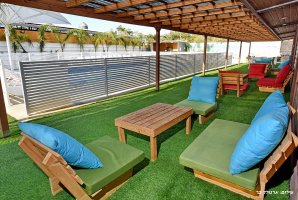 חצר הנופש של המתחם כוללת בריכה פרטית מגודרת, ג'קוזי ספא מרובע, פינות ישיבה ושיזוף, מתקני חצר לילדים, פינג פונג, מגרש כדורסל, שולחן סנוקר, עמדת מנגל ומטבח חיצוני. החצר המטופחת משדרגת כל חופשה.
