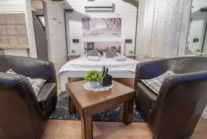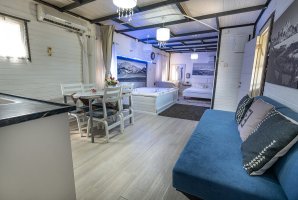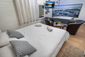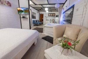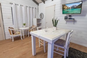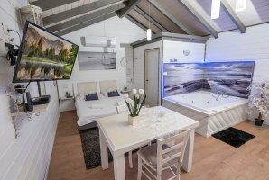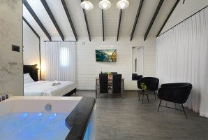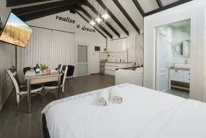 מיד בכניסה אל הצימר תגלו אמבט ספא יוקרתי לצד מיטה זוגית נוחה. רצפת הפרקט משרה אווירה כפרית יוקרתית. אוהבים סרטים ותכניות טלוויזיה? תמצאו בצימר מסך שטוח עם כל הערוצים האהובים של YES ובנוסף גם מנוי נטפליקס. בצימר גם שולחן אוכל, פינת ישיבה ומטבחון.