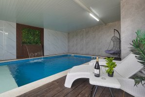 צימר מפנק בסביבה מבודדת ופסטורלית עם אמבט ספא פנימי, בריכה פרטית מחוממת ומקורה בהתאם לעונה, עיצוב כפרי ומיקום מבוקש בקרבת מסלולי טיול, מסעדות ואטרקציות תיירות.