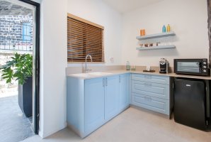 איזה אבזור קיים במטבח של UG בוטיק?האבזור הקיים במטבח של UG בוטיק: קומקום חשמלי, מכונת אספרסו / קפה, מקרר קטן, מיקרוגל.
