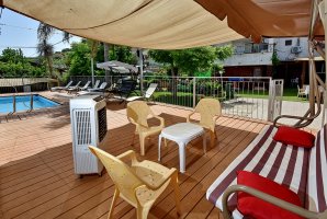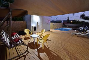את חופשת הקיץ מבלים אורחי צימרים בבריכה מרעננת ומפנקת. הבריכה משדרגת משמעותית את החופשה בעבור משפחות, זוגות וקבוצות חברים. חצר הנופש כוללת גם מדשאות, שולחן כדורגל, שולחן פינג פונג, שולחן סנוקר, עמדת מנגל ופינת ישיבה. להנאתכם הוספנו לחצר גם ערסלים.