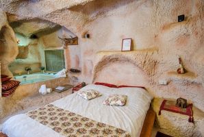 מערת פאר מהודרת ממתינה לכם עם אמבט ג'קוזי מרובע זוגי, נרות מקיפים את האמבט וישנו מקום מתאים בדיוק לשתי כוסות יין או צלחת של פירות טריים. לצד האמבט תמתין לכם מיטה נוחה מסודרת עם כלי מיטה רכים ומצעים נקיים איכותיים. המיטה של מערות היין מומלצת למי שאוהב לישון, יחד עם מערכת מיזוג אוויר טובה תצליחו לשקוע במהרה בשינה טובה ולהתעורר למחרת היום רעננים לקראת ארוחת בוקר עשירה ויום של פינוק בבריכה שבחצר.