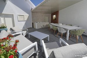 חצר הנופש של האחוזה היא האטרקציה המרכזית. אתם מוזמנים לבלות עם בריכה פרטית מחוממת ומקורה בעונה, ג'קוזי ספא מפנק במיוחד, פינות ישיבה נוחות, ערסלים, עמדת מנגל מאובזרת, תאורת גן, פינות שיזוף, מדשאה מטופחת, ריצוף דק עץ יוקרתי.