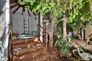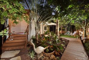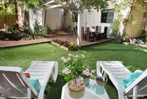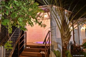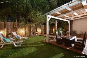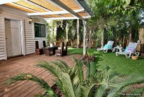 בחצר שמקיפה את הצימרים תמצאו מדשאה, ערסלים, תאורת גן רומנטית, ריהוט גן נוח, ג'קוזי ספא ועוד.