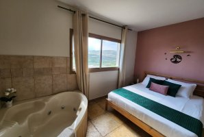כאן בצימרים תיהנו מאמבט ספא, עיצוב פנים רומנטי, מיטה נוחה, מכונת קפה, מבחר ערוצי טלוויזיה, נוף מהיפים בארץ, אפשרות להזמין תוספת של ארוחות שף.